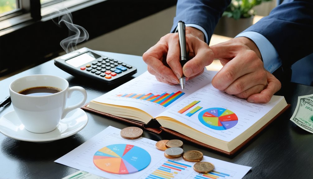 While market fluctuations are a natural part of investing, diversifying one’s investments can substantially mitigate risks and enhance potential returns. A strategic approach to asset allocation—balancing stocks, bonds, real estate, and commodities—serves as a foundation for reducing volatility. High-quality bonds provide stability during equity declines, while real estate investments offer reliable income streams. Additionally, including defensive sectors like healthcare and utilities can safeguard portfolios during economic downturns. Blue-chip stocks tend to outperform riskier companies during economic contraction. To further strengthen your portfolio, consider adding recession-resistant sectors as they typically show resilience during challenging economic times. Properties like multifamily housing not only retain their value but also continue to generate income, making them a crucial consideration for investors. Regular portfolio rebalancing guarantees that investments remain aligned with financial goals, adapting to market changes without compromising on risk management. Moreover, incorporating high-quality bonds into your portfolio can help offset declines and stabilize returns when stocks fall sharply. Furthermore, setting aside three to six months worth of living expenses in a relatively safe account can provide additional security during economic uncertainty.